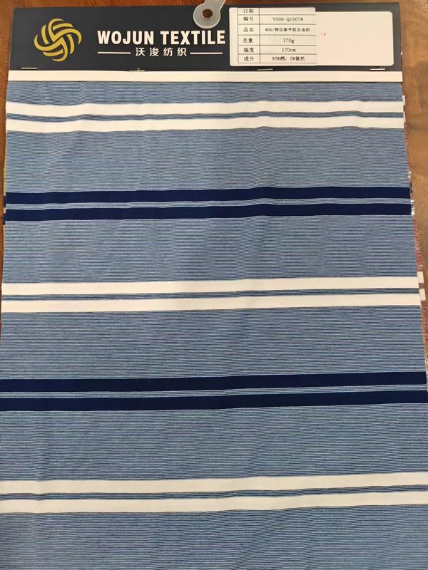 Foshan wojun textile co., ltd est un fabricant de tissu de tricot de milieu de gamme, haut de gamme dans plus de 100 ensembles de machines de tricot circulaires d'une capacité de plus de 8000 tonnes par an avec une usine 10,000 m2 et entrepôt de 3000 m2Nous avons plus de 25 ans d'expérience dans la production de tissus de tricot.tissus rayésNous sommes très attentifs à la qualité des tissus.